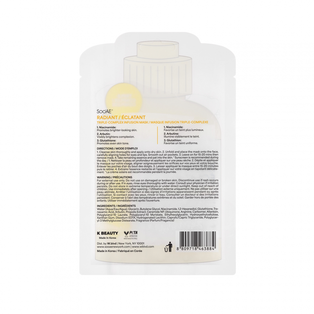 A triple-complex infusion mask formulated to brighten dull skin and restore a clear, radiant glow.